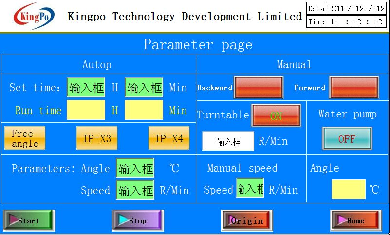 5.Enter the operation interface;click the stop key to stop the test.Click Home position return and set parameters to begin the second test.